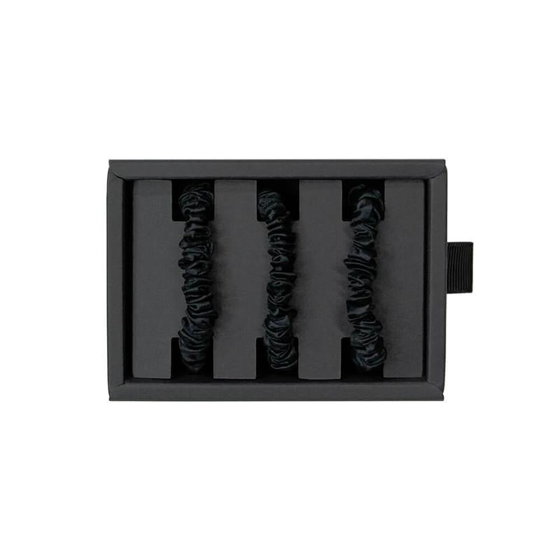 Blissy 3-Pack Skinny Silk Scrunchies - 100% Mulberry Silk, Dent-Free & Snag-Free