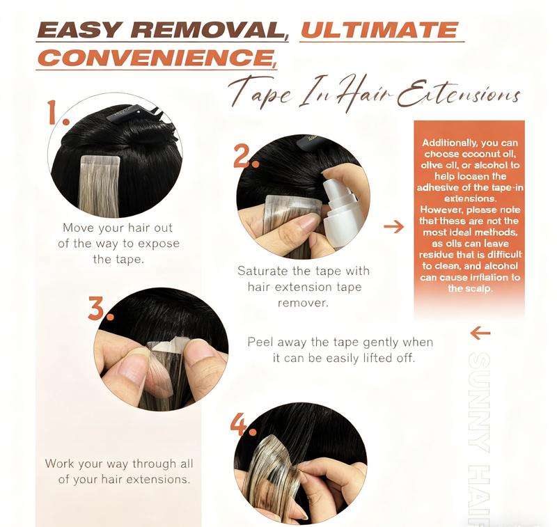 Elevate your hair with Sunny's premium tape-in extensions, crafted from 100% genuine human hair. These natural straight strands deliver a silky texture that seamlessly blends with your own hair, creating an undetectable finish. The invisible tape application method ensures secure, comfortable wear without visible seams or damage to your natural hair. Perfect for adding length, volume, or dimension, these extensions maintain their quality through proper care and styling. Experience the confidence of luxurious, authentic hair that looks and feels completely natural.